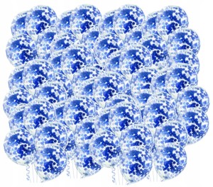 Balony duże przezroczyste niebieski konfetti 100sz