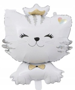 BALON foliowy kotek kot biały z koroną 52 x 71 cm