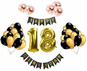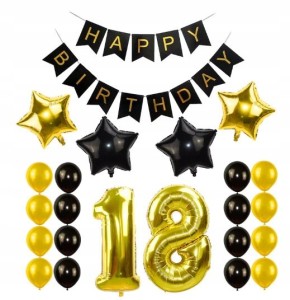 ZESTAW BALONY 18 URODZINY OSIEMNASTKA CZARNY ZŁOTY