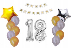 ZESTAW BALONY 18 URODZINY osiemnastka srebro złoto