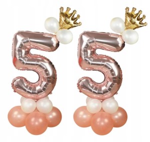 ZESTAW BALONÓW URODZINY cyfra 55 rose gold korona