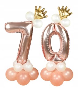 ZESTAW BALONÓW URODZINY cyfra 70 rose gold korona