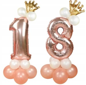 ZESTAW BALONÓW URODZINY cyfra 18 rose gold korona