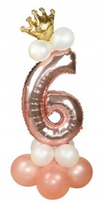 ZESTAW BALONÓW URODZINY cyfra 6 rose gold korona