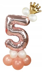 ZESTAW BALONÓW URODZINY cyfra 5 rose gold korona