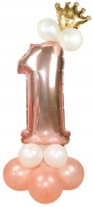 ZESTAW BALONÓW URODZINY cyfra 1 rose gold korona