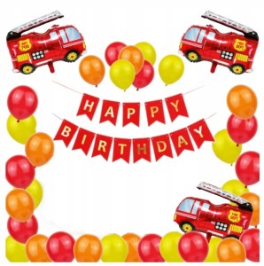 Zestaw balonów urodzinowych Wóz Strażacki Strażak