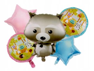 Zestaw balonów urodzinowych zwierzęta szop 5 szt.