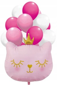Zestaw balonów różowe białe kot kotek urodziny