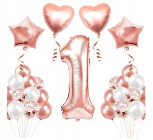 Zestaw balonów rose gold pierwsze urodziny roczek