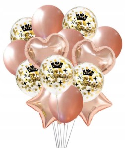 Zestaw balonów rose gold konfetti happy birthday