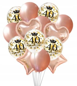 Zestaw balonów rose gold konfetti na 40 urodzin