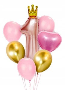 Zestaw balonów roczek 1 urodziny różowy korona hel