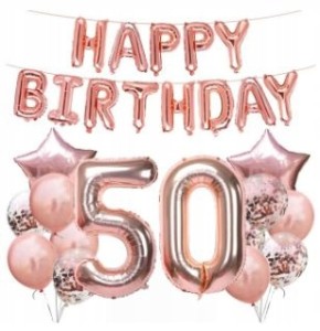 ZESTAW rose gold BALONY 50 URODZINY pięćdziesiątka