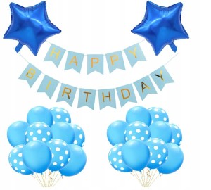 ZESTAW różowych balonów urodziny kropki niebieskie