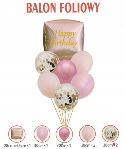 ZESTAW ROCZEK BALONY FOLIOWE gumowe URODZINY 1 róż