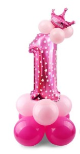 Zestaw różowe balony pierwsze urodziny roczek hel
