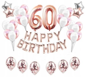 ZESTAW BALONY URODZINY 60 sześćdziesiątk ROSE GOLD