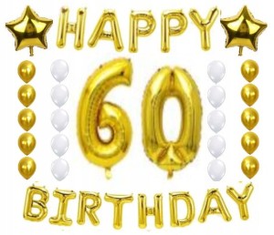 ZESTAW BALONY URODZINY 60 sześćdziesiątka złoto 28