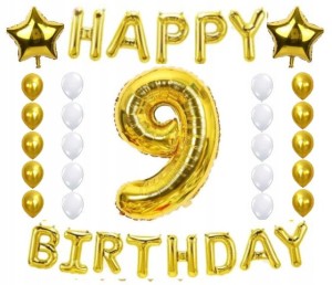 ZESTAW BALONY URODZINY 9 dziewiąte złoto 28szt