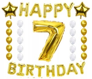 ZESTAW BALONY URODZINY 7 siódme złoto białe 28szt