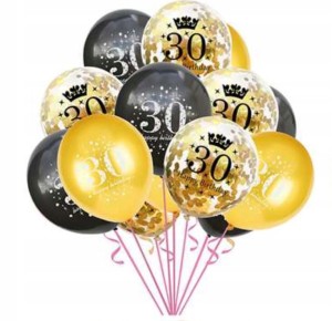 zestaw balony złote czarne 30 konfetti 12szt 30 cm