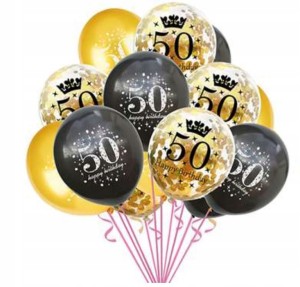 zestaw balony złote czarne 50 konfetti 12szt 30 cm