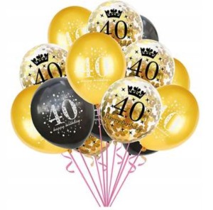zestaw balony złote czarne 40 konfetti 12szt 30 cm