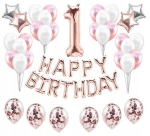 ZESTAW BALONY URODZINY 1 roczek pierwsze ROSE GOLD