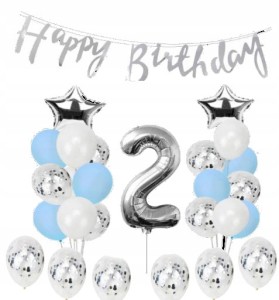 ZESTAW BALONY URODZINY 2 drugie srebrne 32szt hit