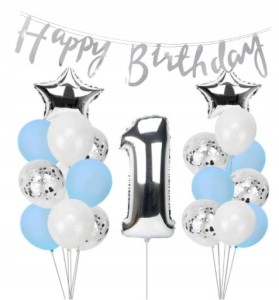ZESTAW BALONY URODZINY 1 roczek srebrne 32szt hit