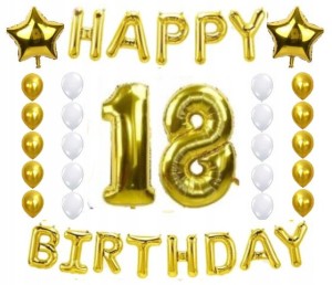 ZESTAW BALONY URODZINY 18 osiemnastka złoto 28szt