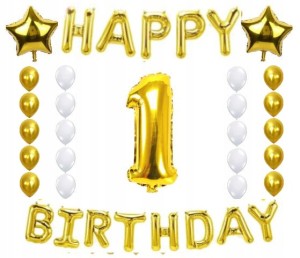 ZESTAW BALONY URODZINY 1 roczek złoto białe 28 szt