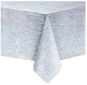 Obrus foliowy plamoodporny wodoodporny srebrny holograficzny 137 x 274 cm