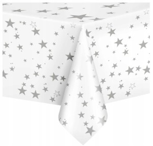 Obrus plamoodporny foliowy 137x274 srebrne gwiazdy