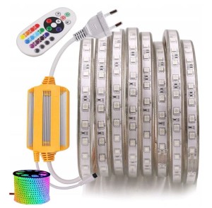 TAŚMA LED RGB 230 V ZESTAW 20 m WODOODPORNA PILOT