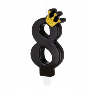 Świeczka urodzinowa czarna złota korona cyfra 8