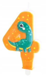 Świeczka urodzinowa cyfra 4 na tort dinozaur 4 urodziny dekoracja czwarte