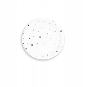 Talerzyki papierowe białe złote gwiazdki urodziny