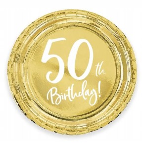 TALERZYKI papierowe złote 6 szt 50 urodziny 18 cm