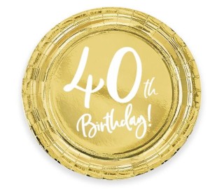 TALERZYKI papierowe złote 6 szt 40 urodziny 18 cm