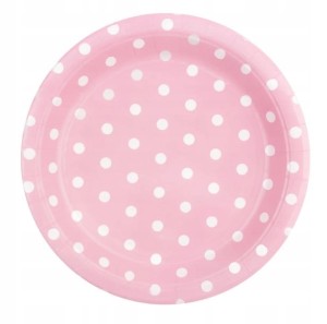TALERZYKI papierowe 6 szt 23 cm różowe w kropki