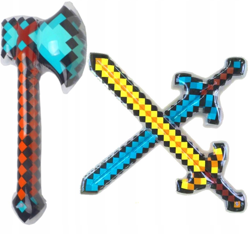 Zestaw Dmuchanych 2 mieczy i Topora - minecraft dla najmniejszych fanów.