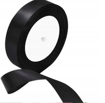 6szt - 1 paczka (4,16 netto / 5,12 brutto -1 szt.) Wstążka tasiemka satynowa czarna 2,5 cm x 22,5 m