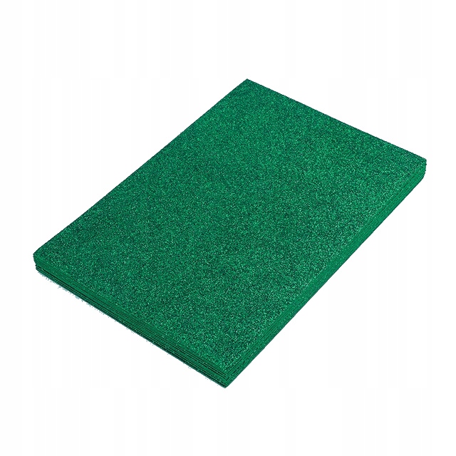 Zestaw 10 arkuszy piankowych zielonych brokatowych w formacie A4.