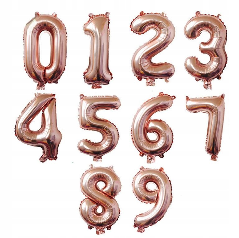 Balon CYFERKA foliowa o wysokości ok 100cm (85-87cm po napompowaniu) w kolorze połyskującego ROSE GOLD. Balon posiada zawór, dzięki czemu powietrze nie uchodzi po napompowaniu. Cyferki posiadają "oczka" do montażu za pomocą żyłki / tasiemki tworząc w ten sposób balonową girlandę, można również przytwierdzić do ściany za pomocą kropek klejowych do balonów.