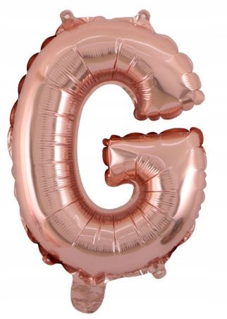Balon foliowy litera G o wysokości ok 40cm (35-37cm po napompowaniu) w kolorze połyskującego ROSE GOLD. Balon posiada zawór, dzięki czemu powietrze nie uchodzi po napompowaniu. Literka posiadają "oczka" do montażu za pomocą żyłki / tasiemki tworząc w ten sposób balonową girlandę, można również przytwierdzić do ściany za pomocą kropek klejowych do balonów.