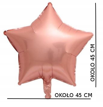 Balon foliowy gwiazda o wysokości ok 45cm w kolorze połyskującego ROS GOOLD PATYNOWYM. Balon posiada zawór, dzięki czemu powietrze nie uchodzi po napompowaniu. Cyferki posiadają "oczka" do montażu za pomocą żyłki / tasiemki tworząc w ten sposób balonową girlandę, można również przytwierdzić do ściany za pomocą kropek klejowych do balonów.