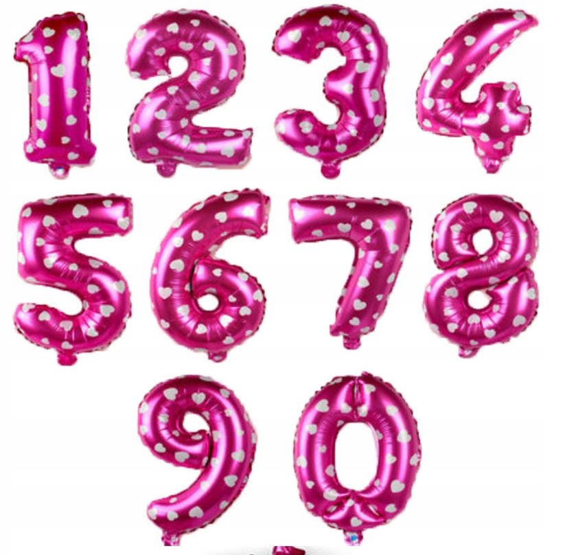 Balon CYFERKA foliowa o wysokości ok 40cm (35-37cm po napompowaniu) w kolorze połyskującego RÓŻU . Balon posiada zawór, dzięki czemu powietrze nie uchodzi po napompowaniu. Cyferki posiadają "oczka" do montażu za pomocą żyłki / tasiemki tworząc w ten sposób balonową girlandę, można również przytwierdzić do ściany za pomocą kropek klejowych do balonów.
