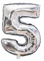 BALON foliowy SREBRNY cyfra PIĘĆ 5 urodziny 70 cm